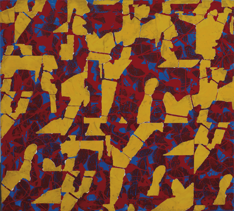 Ilona Keserü (1933) combines freely soaring sequences of organic motifs with a wide-ranging chromatic geometric grid, while Zoltán Tölg-Molnár (1944–2024), who rarely appears as a gestural painter, works with great economy, building his composition on a single sequence of movements and the contrast between dark and light.
