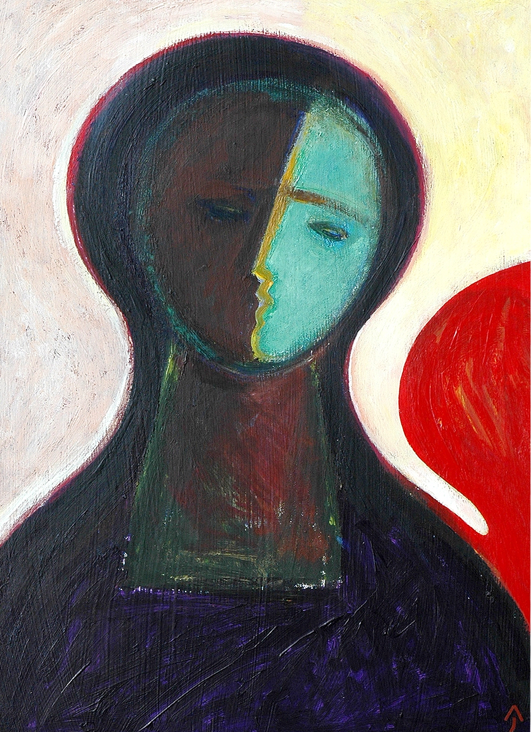 Aknay János Festőangyalával (2006) kell kezdenem, a szelíd tekintetű védelmező alakkal, amelyre a művész akkoriban talált rá, amikor a kislányát elveszítette. Évtizedeken át alkotta újra ikonszerű időtlenséget sugárzó kompozícióin e stilizált figura különböző variánsait, amely így festészete legismertebb szereplőjévé vált. A művész idén maga is eltávozott az élők sorából, és boldogok, akik hinni tudnak abban, hogy immár egy más minőségben, de mindörökké együtt lehet azzal az angyallal, akinek nyolc éven át az édesapja volt.